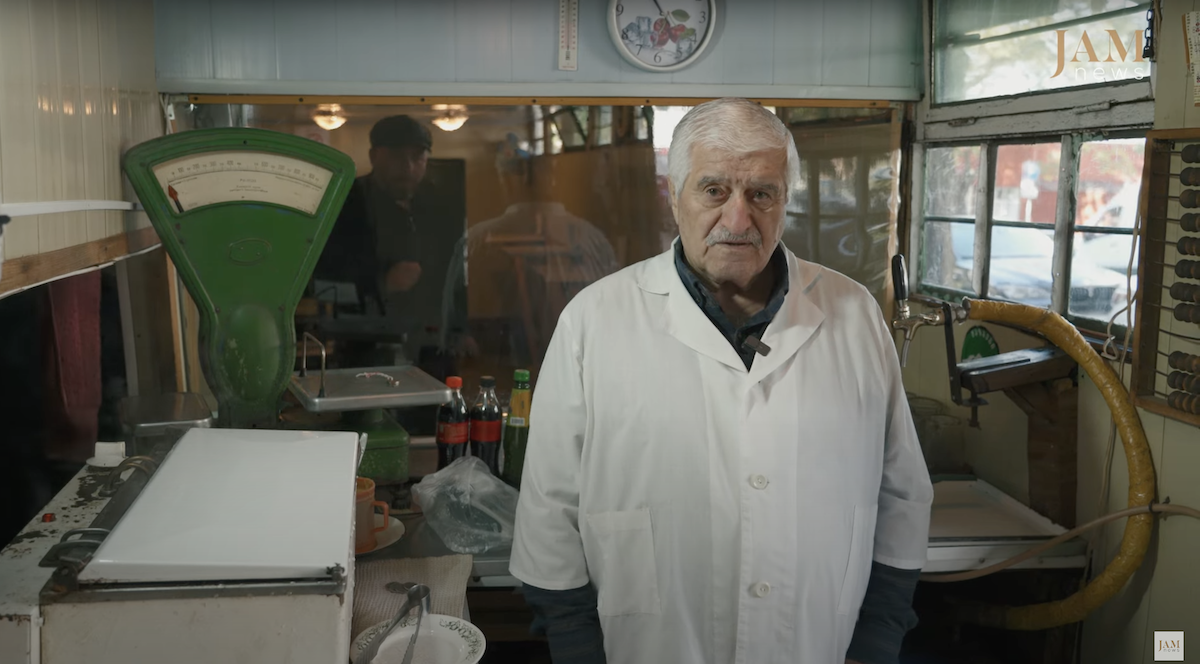 Sausages, mustard, beer, bread and lemonade – the menu has remained unchanged for 53 years. Nodar Vardiashvili is always behind the counter. He has been working here practically all his life, since 1970 when he arrived in Tbilisi as a 22-year-old.
