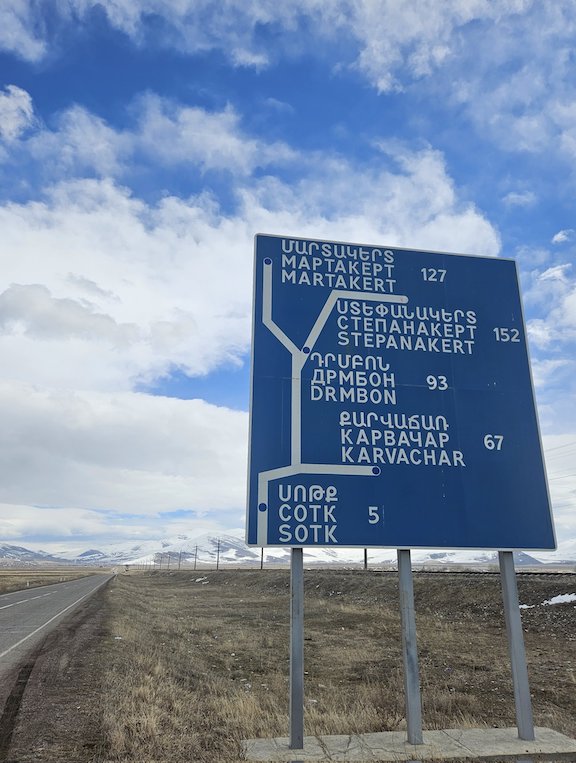 “Their right to return, recognized by the International Court of Justice, is violated today,” the Ambassador said, publishing to his post a photo of a road sign with distances to Martakert, Stepanakert, Drmbon, Karvachar, and Sotk.