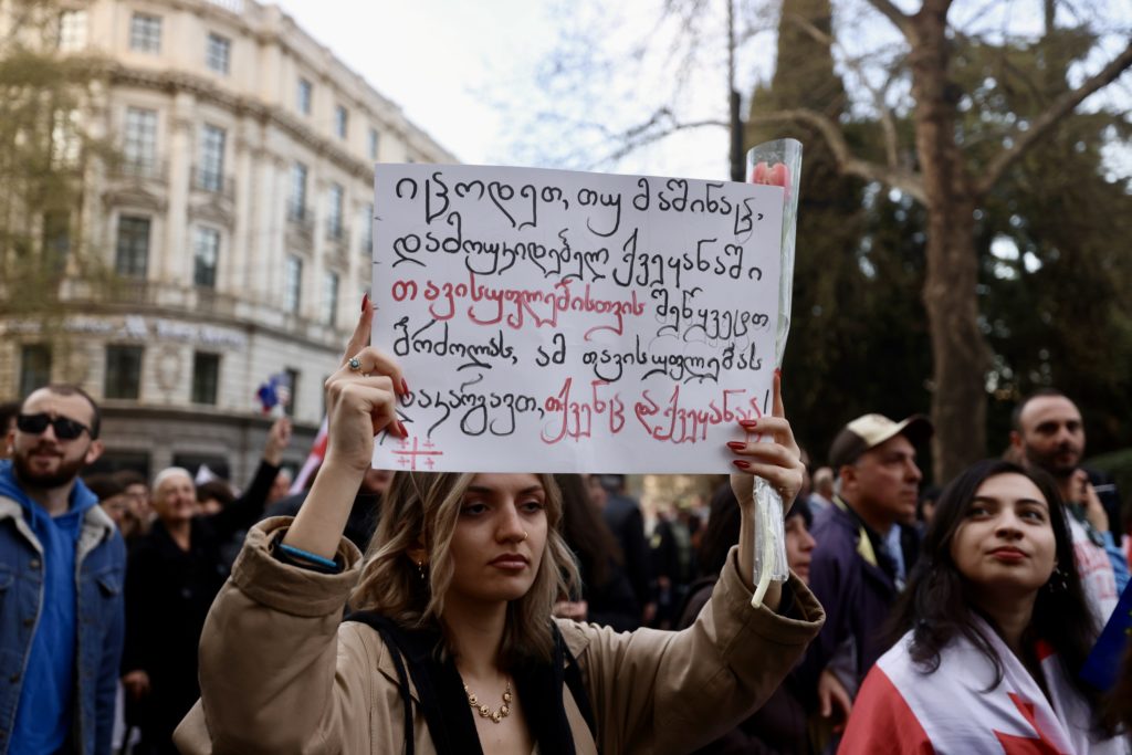 Activists rally against Foreign Agents bill on April 9, 2024. Source: Guram Muradovi/Civil.ge