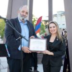 The Armenian Dance Academy of Las Vegas students took part in the commemoration, handing out carnations to the public which were then placed at the Eternal Circle of the monument.