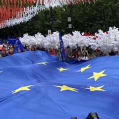 Watch Tbilisi landmarks illuminated in EU flag colours after obtaining candidate…