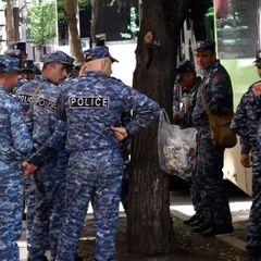 Police are brought to Yerevan Republic Square on buses